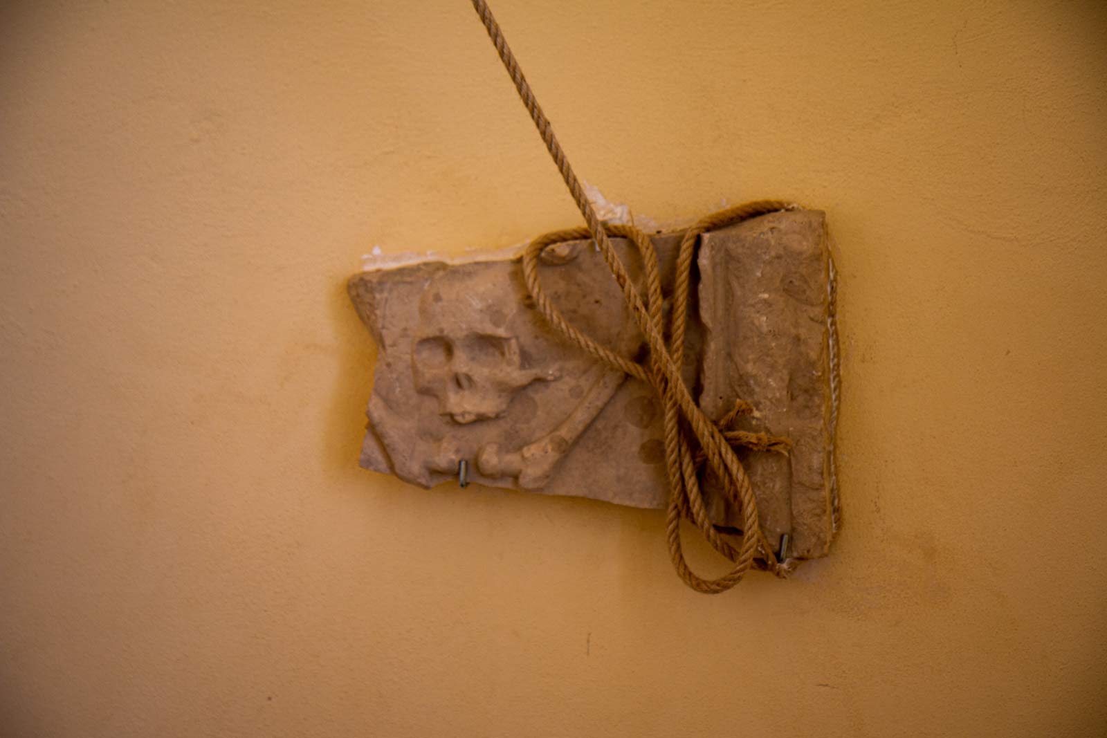Se poi vi soffermate a guardare i particolari, come il frammento di marmo scolpito con teschio, potrete immaginare il rapporto degli uomini di quel tempo con la vita.
