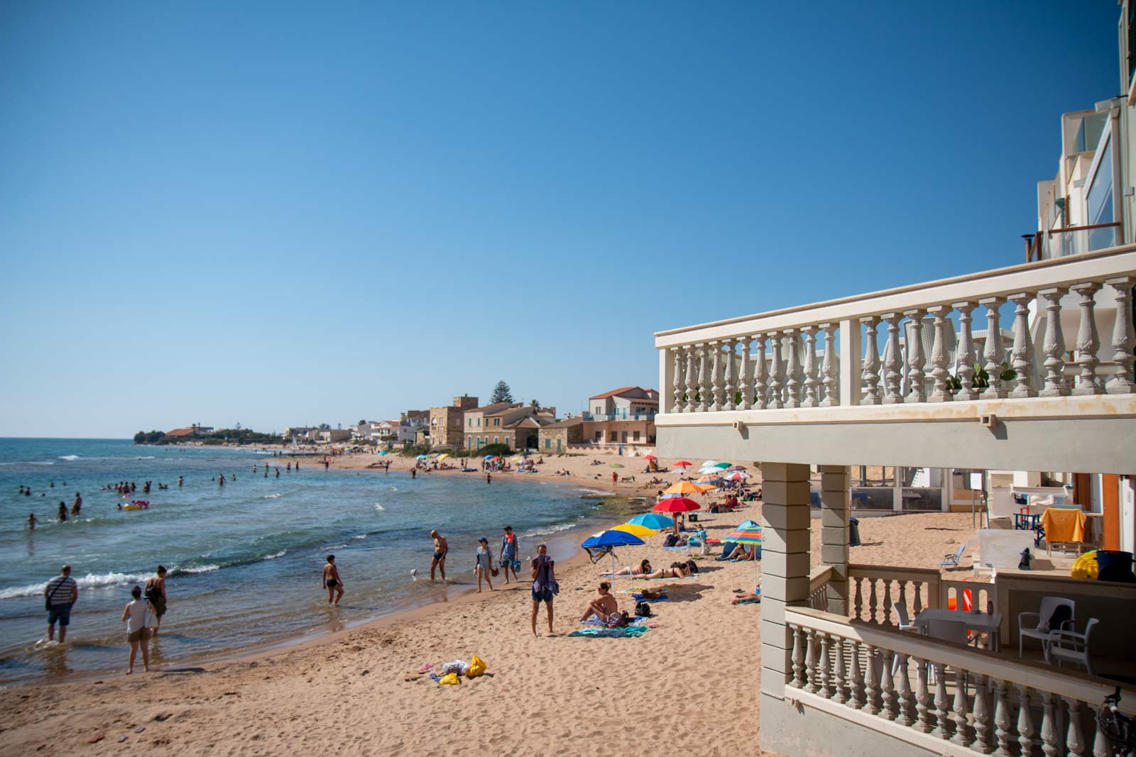 Dopo questa pausa è il momento di scendere verso la meravigliosa costa: ci aspetta Punta Secca, dove abbiamo modo di fotografare la casa resa celebre da Camilleri e dal suo Commissario Montalbano e prendere un caffè. Qui le case si affacciano direttamente sul mare, contribuendo a fermare l’erosione delle nostre coste e creando uno scenario suggestivo. Sembra quasi possibile tuffarsi dai balconi, che in realtà distano dal mare non più di dieci passi.