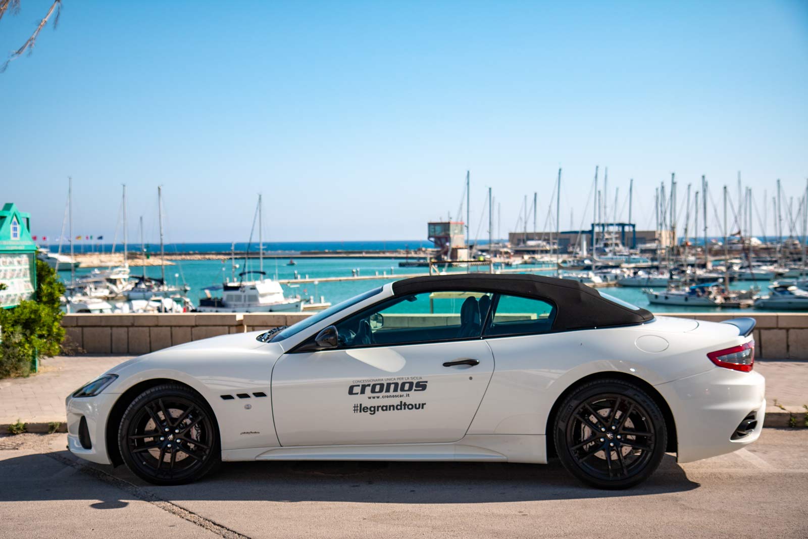 Ultima tappa al porto turistico di Marina di Ragusa: un piccolo gioiello all’interno di una frazione marinara che non ha nulla da invidiare per servizi, strutture e accoglienza alle più blasonate località.  La Maserati GrandCabrio si sente subito a suo agio nel mondo della vela, d’altronde sono due mondi emozionali perfettamente contingui.