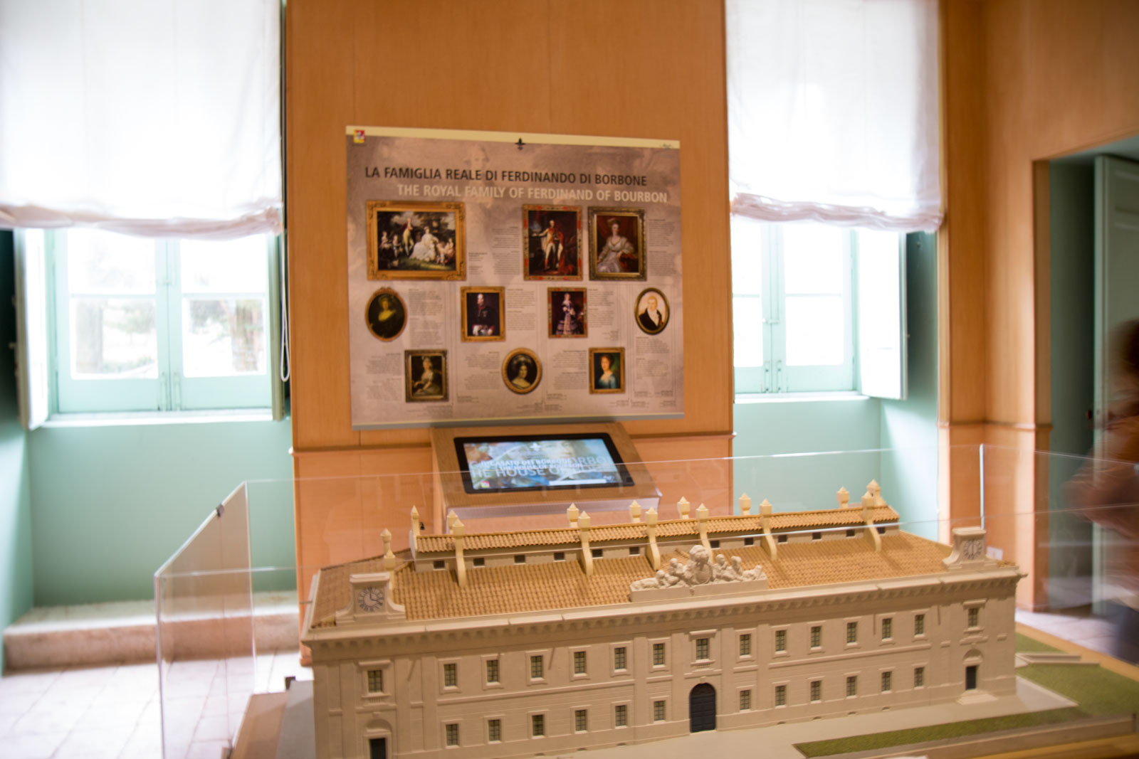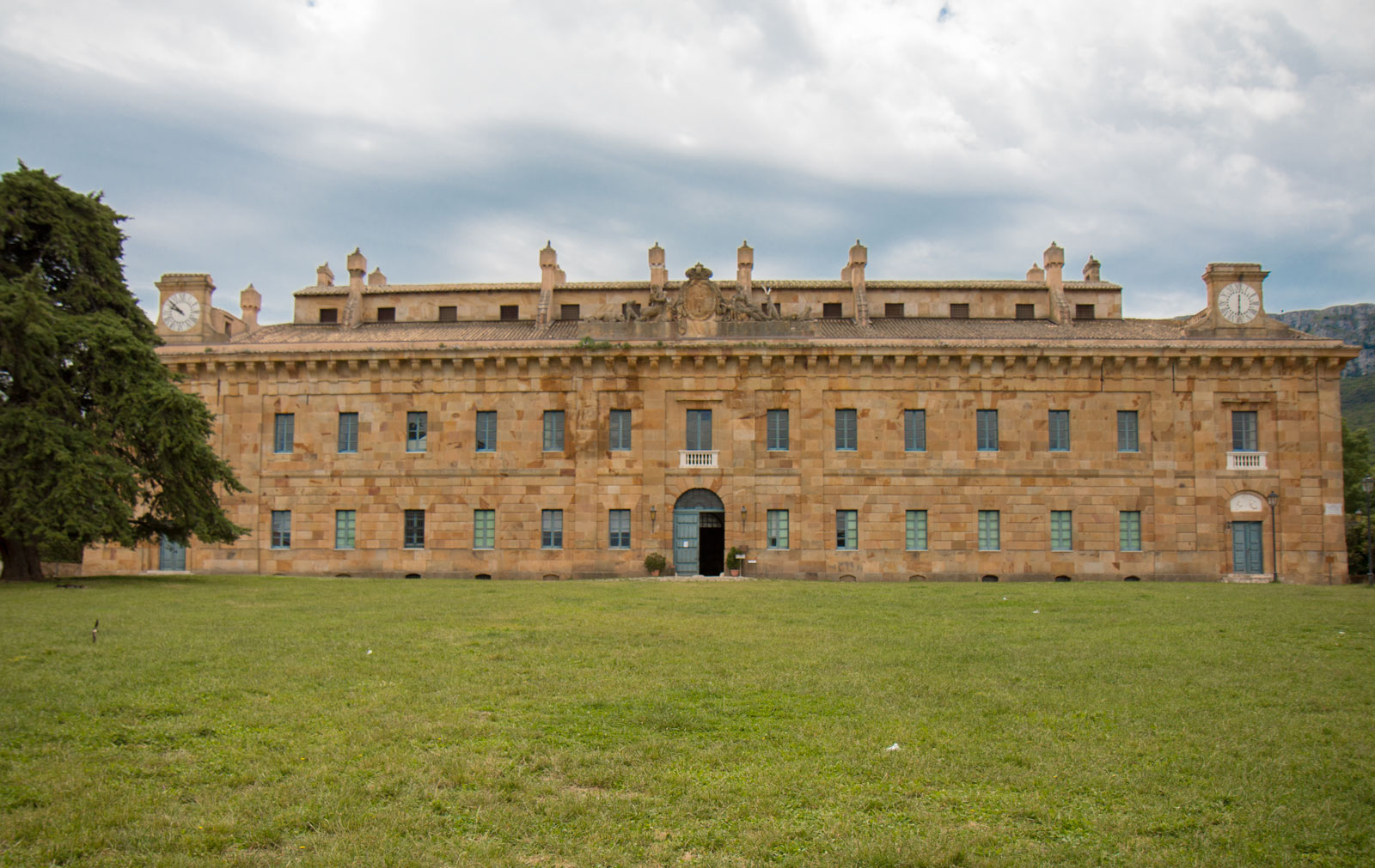Con ancora le splendide immagini della villa negli occhi ripartiamo alla volta di un altro grande patrimonio storico dell’isola: la Regia Casina di caccia, nel bosco di Ficuzza, voluta da Ferdinando secondo di Borbone. Il complesso è monumentale e maestoso, con uno splendido prato sul quale molti bimbi, nonostante la giornata fredda giocano. Arrivarci è un piacere, il paesaggio è quasi alpino e la temperatura è quella di montagna. Scesi dalla nostra Levante cominciamo ad esplorare l’esterno, con le costruzioni di servizio, le scuderie, fino ad avvicinarci alla facciata neoclassica siciliana, che reca ancora oggi lo stemma borbonico.